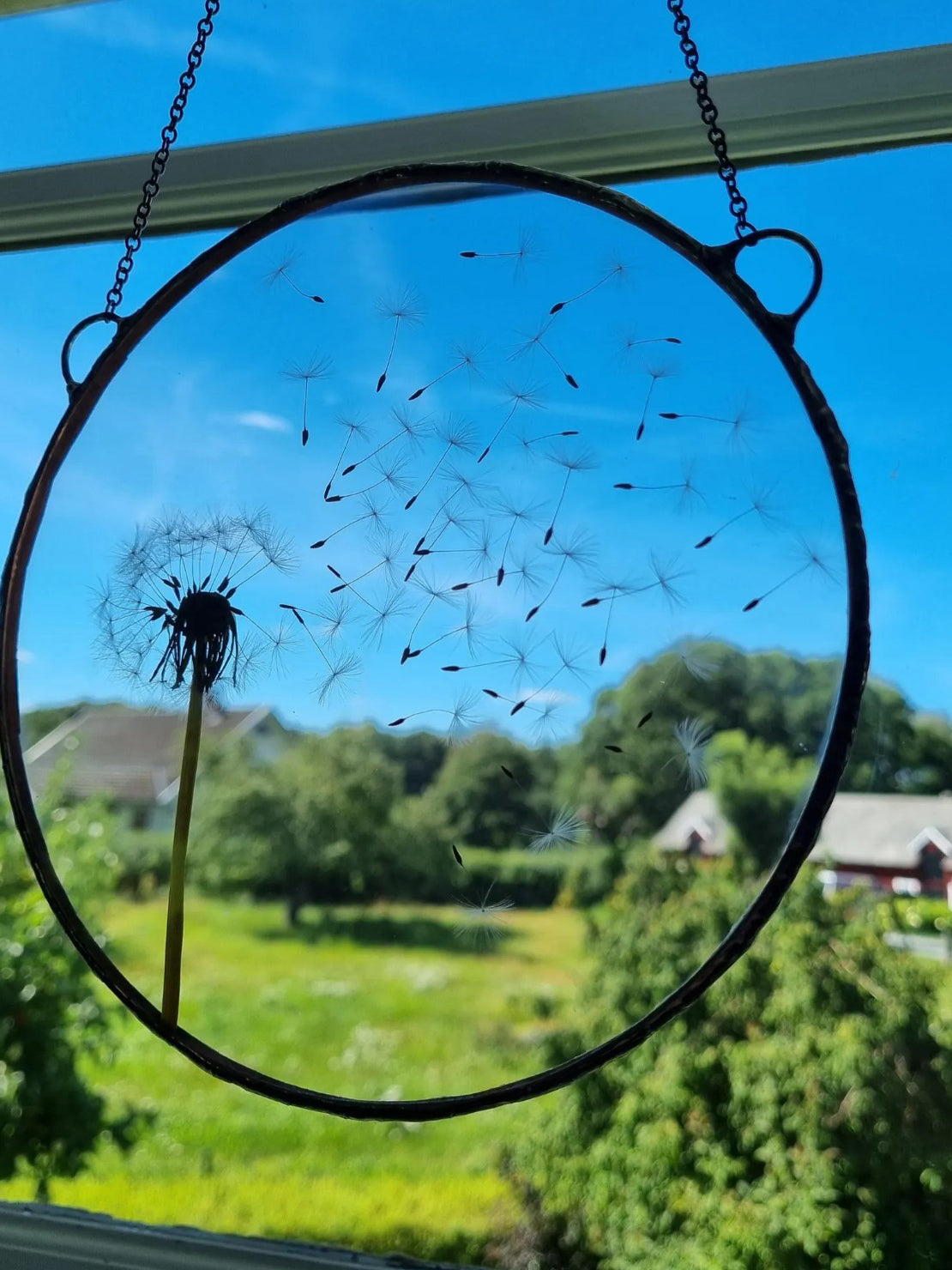 Framed dandelion art – handmade in Sweden with upcycled glass and pressed nature.