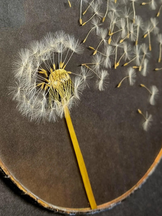 Dandelion botanical wall art, Terrarium decor. Round